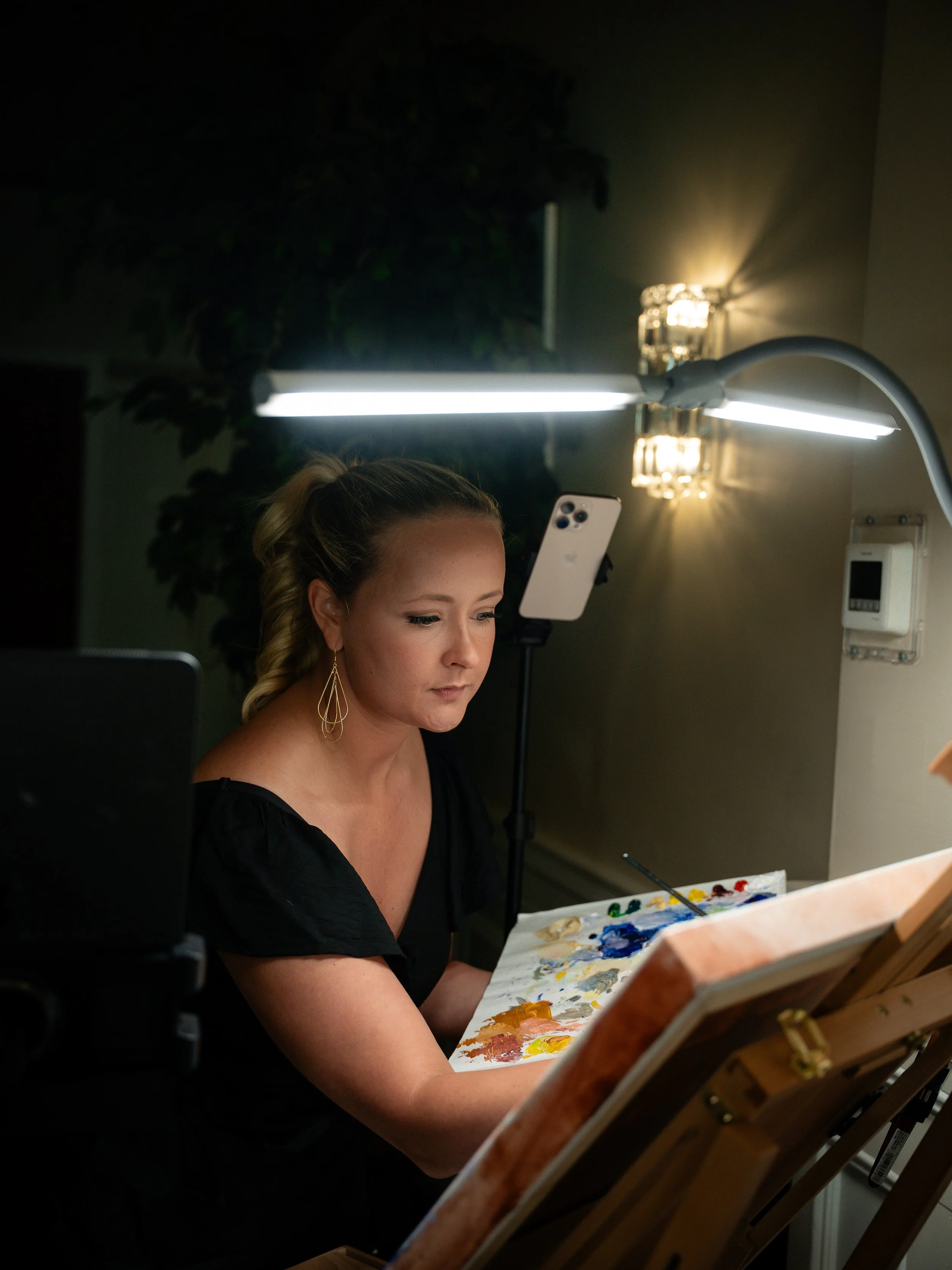 Beyond the classroom, Jessica channels her passion for art into her small business, Jessicastabileart, where she offers a range of creative services. These include hosting paint parties, live event painting, creating commissioned artwork, and exploring oils and acrylics in her studio practice. Her versatility and dedication to her craft enable her to connect with diverse audiences and bring her artistic vision to life in meaningful ways.